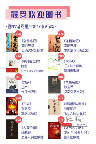 第四,《盗墓笔记》《龙族》《平凡的世界》《三体》和《大秦帝国》位列中南学子最受欢迎图书前五。