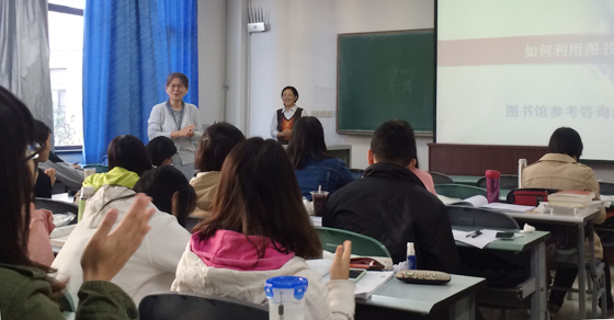 本站讯 近日,应外国语学院刘静教授的邀请,图书馆参考咨询部主任苏菊老师在6202和6205教室为学生开展了一堂针对《英语学术论文写作》课程的嵌入式教学。在这次教学中,苏菊老师按照刘静教授的要求,结合同学们非常关心的问题,如搜索引擎能否代替专业的数据库?怎样在庞大的信息资源中快速、准确地获取他们需要的文献?哪些数据库与外国语学院的专业密切相关?相关数据库有什么特点和功能、如何使用等方面,详细讲述了图书馆资源的特征和使用技巧。
