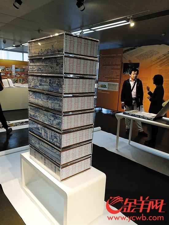 另一部经典巨作——经龙装《清·孙温绘程甲本图文典藏版红楼梦》(见左图)也于当天在莞图亮相。此书一套八函,总高1.23米,首以经龙装的装帧形式将120回木活字版程甲本《红楼梦》及230幅清代孙温绘《红楼梦》收录其中,是张晓栋及其团队历时四年半结合传统的龙鳞装、经拆装再造《红楼梦》的又一书籍艺术珍品。