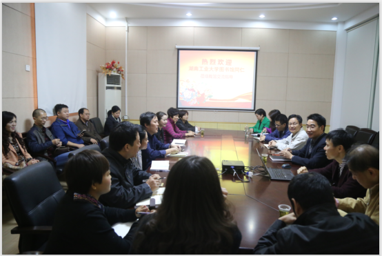 2016年10月27日上午,湖南工业大学图书馆陈科华馆长、王友良书记一行15余人来湖南师范大学图书馆参观交流。湖南师范大学图书馆馆长周玉波、党总支书记鄢朝晖热情接待并组织相关部门主任召开了业务交流会。双方就专业文献阅览室与密集书库的建设、读者服务与信息服务的开展等工作展开了深入的交流与探讨。