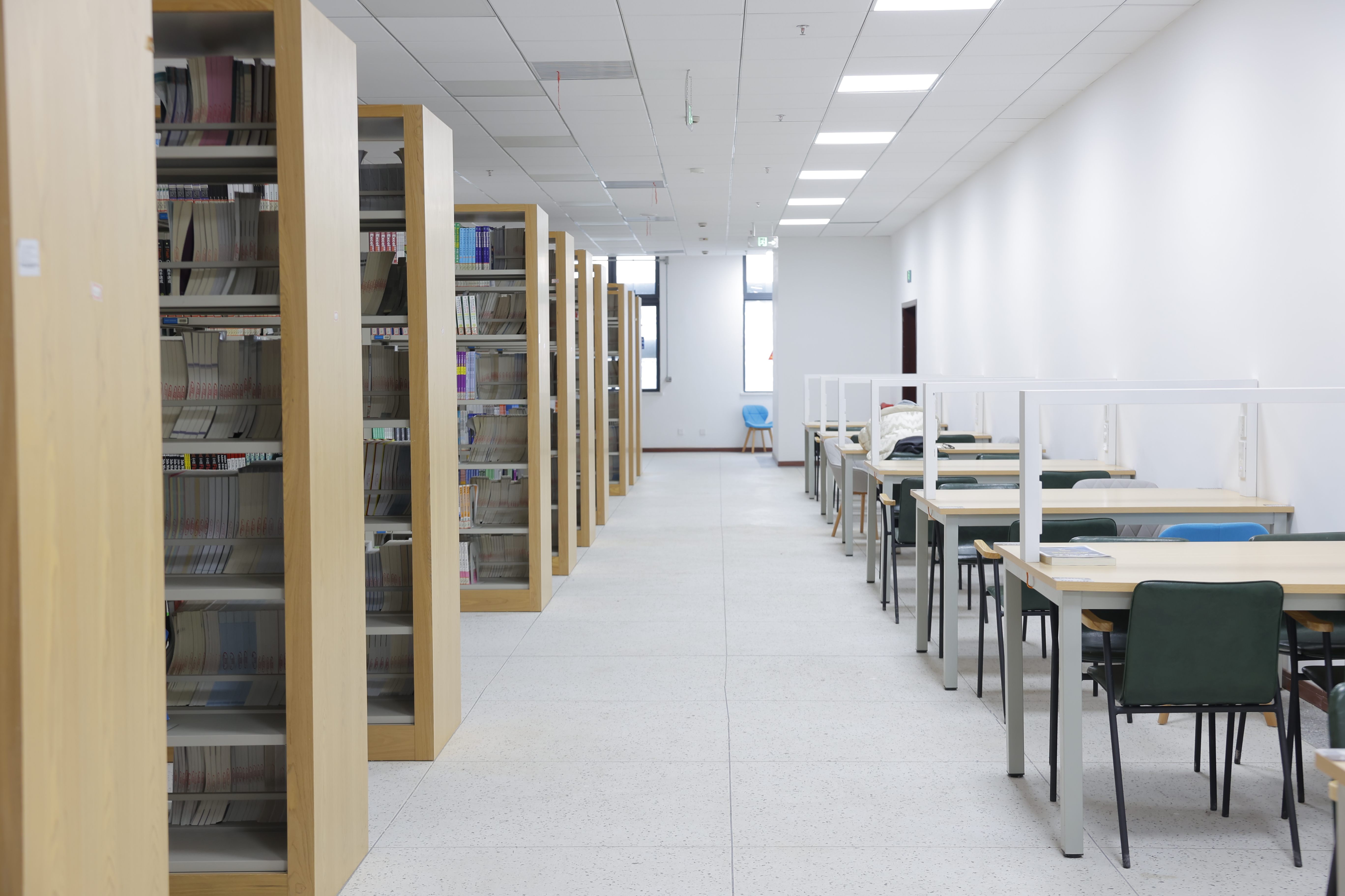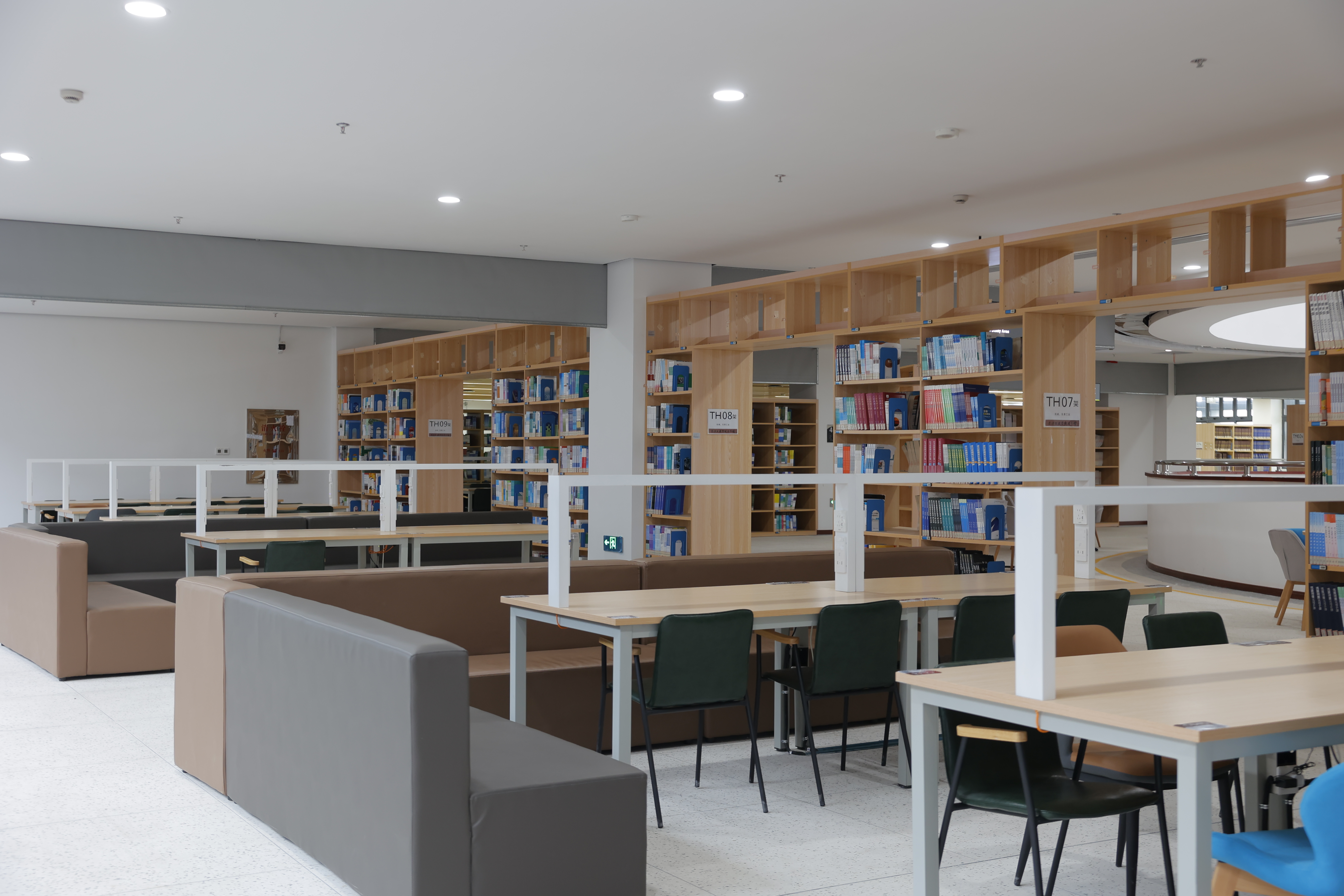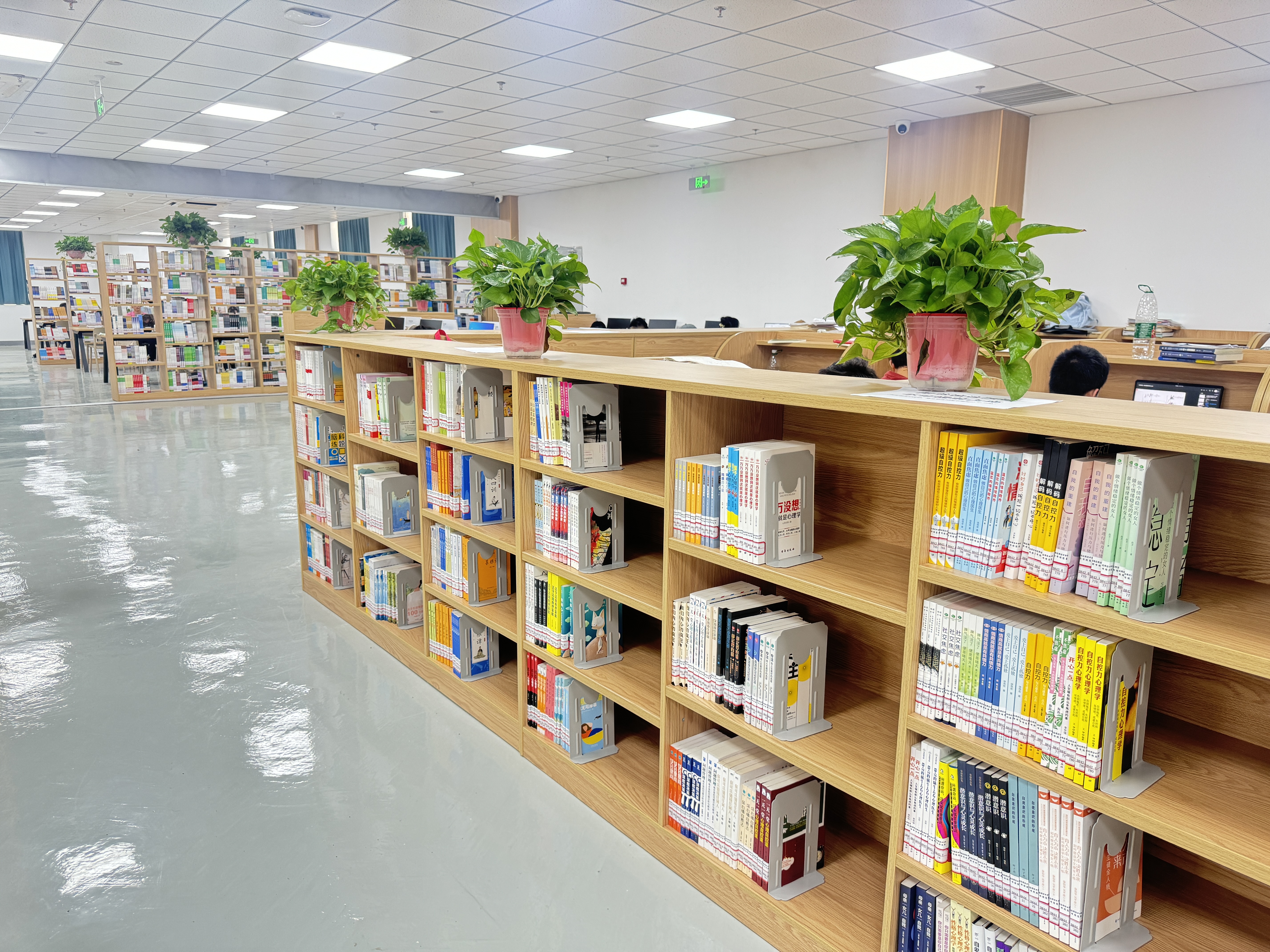 为应对新时代高校图书馆向智慧化、复合型、开放型转型的需求,西校区图书馆于2024年8月完成了空间重构与服务升级项目。项目以“满足师生学术研究、学习提升及文化需求”为核心目标,通过整合人文资源与科技手段,打造了兼具知识传播、学术交流、文化传承与休闲体验的新型校园空间。图书馆引入了自助借还机、检索机、超星瀑布流电子图书借阅机、AI馆员、书法机、朗读亭等智能化设备,设置了可视化大数据智慧屏,实现了智能化管理。空间布局上除了设有8个藏书阅览室,还增设了红色书屋、科技馆、新书阅览室、研讨间、考研自修室等功能区,可充分满足师生多样化的学习、教学与科研需求。