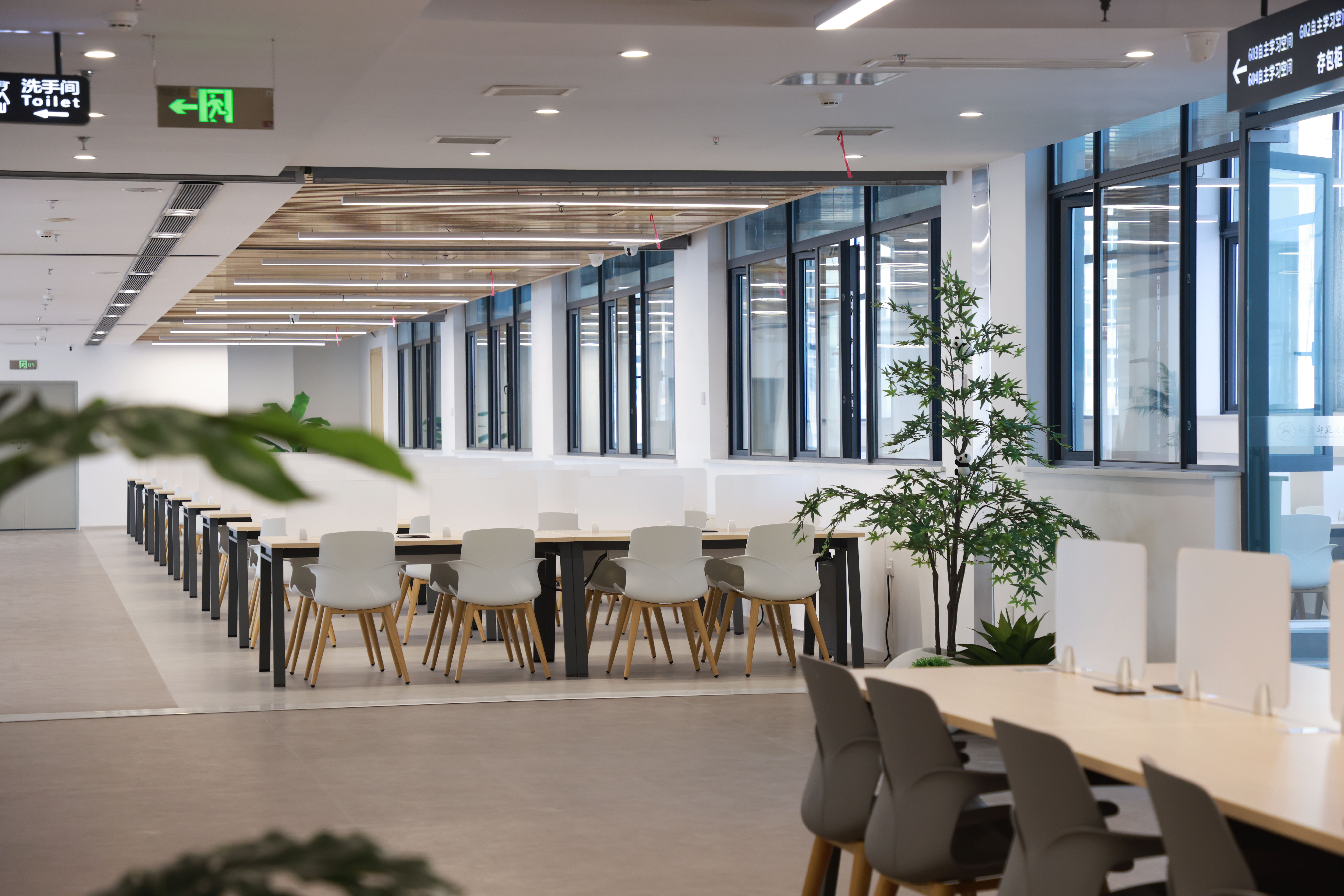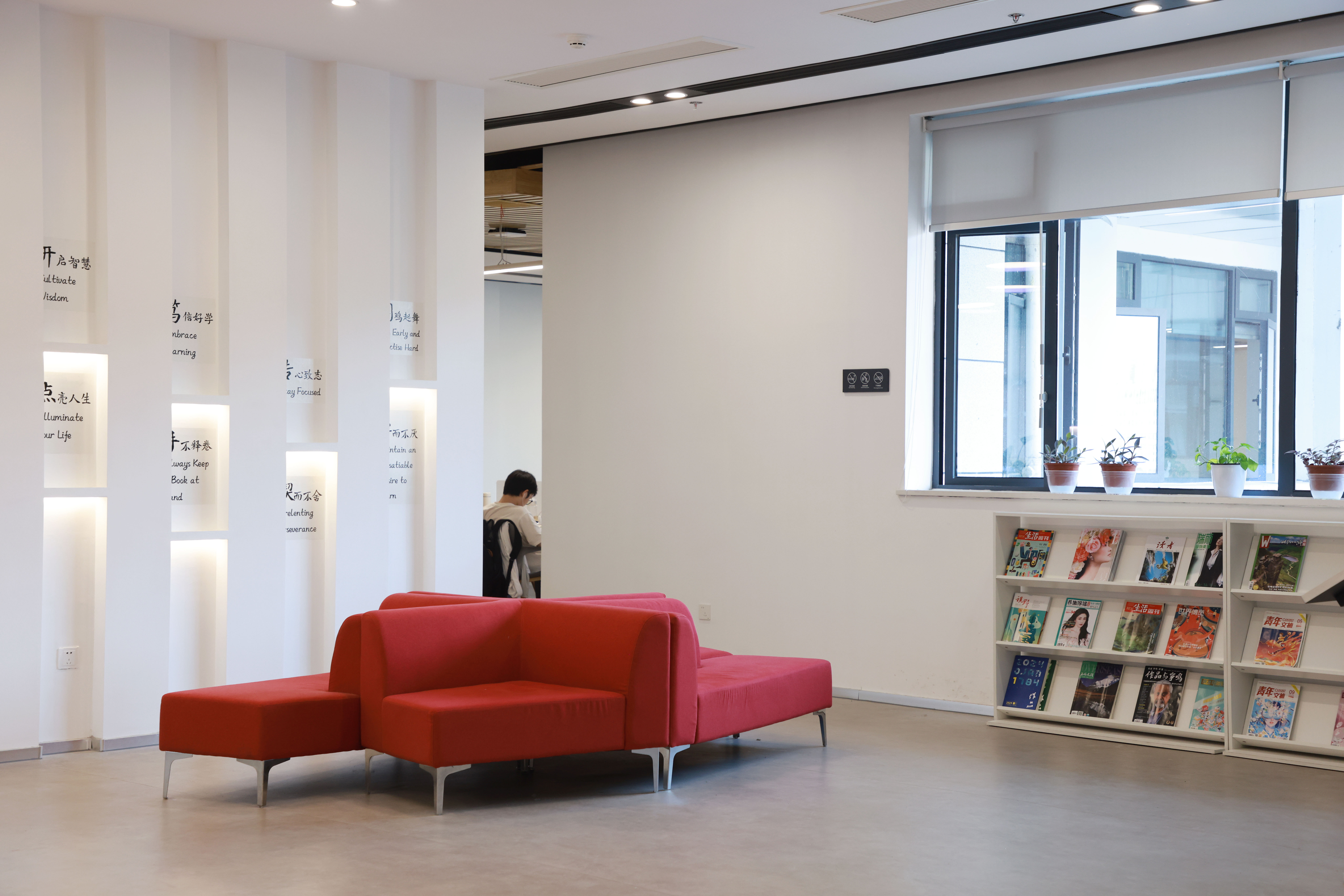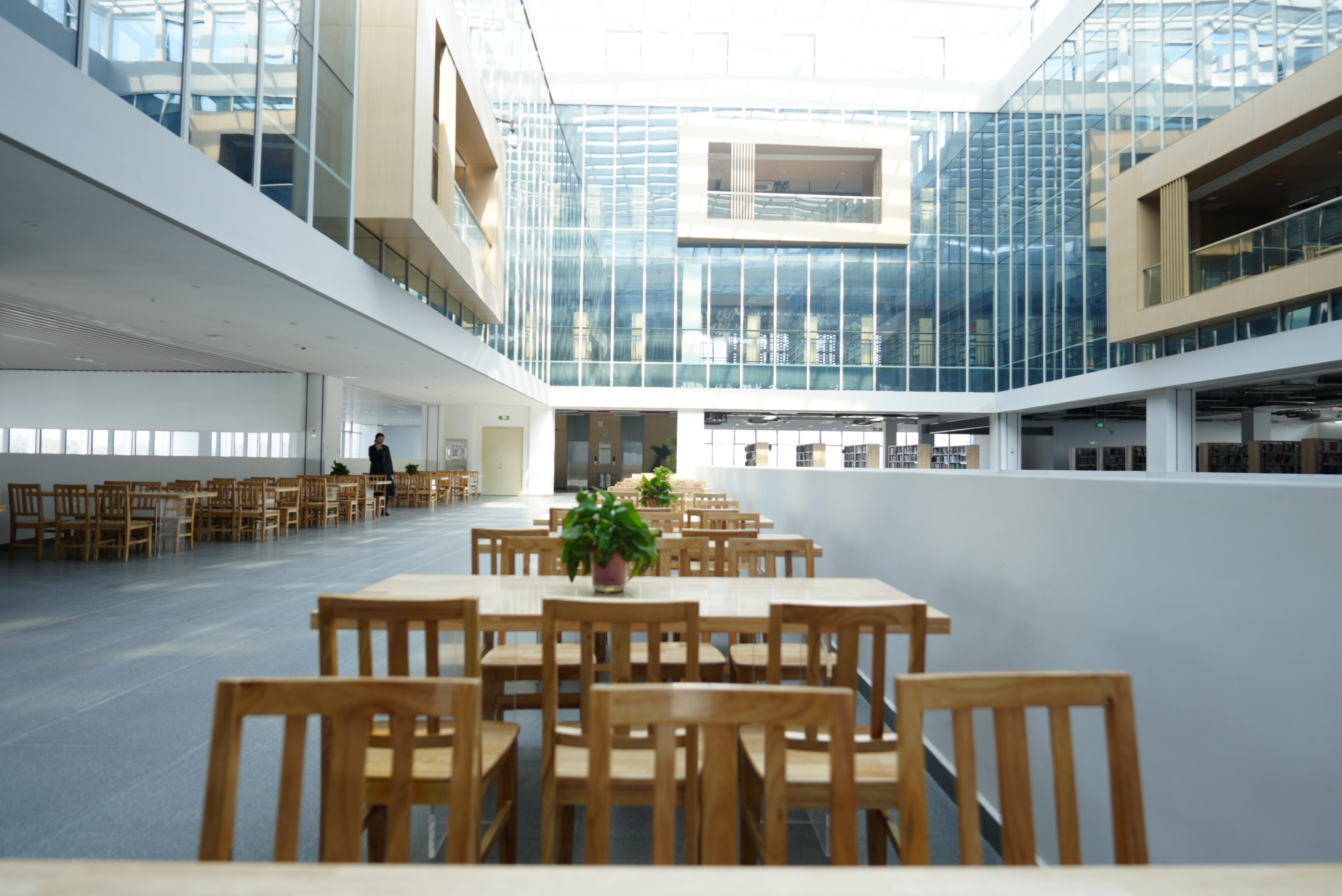 本馆在功能设置上,融传统藏、借、阅功能与现代智能化、个性化阅读体验、活动交流等功能为一体。现有开放性阅读座位2000余个,师生学习研讨室、学习体验室、读书报告厅、小型会议室、特色藏书室等封闭学习空间20余个,另有各种现代化的智能借阅与学习体验设备20余种200余件。采用先进的智慧管理系统,含读者出入门禁安保系统、学习空间与座位预约系统、纸质图书管理系统以及自主开发的图书馆阅读学习课程学分评价系统,为读者提供研讨式、个性化与体验性的学习服务。