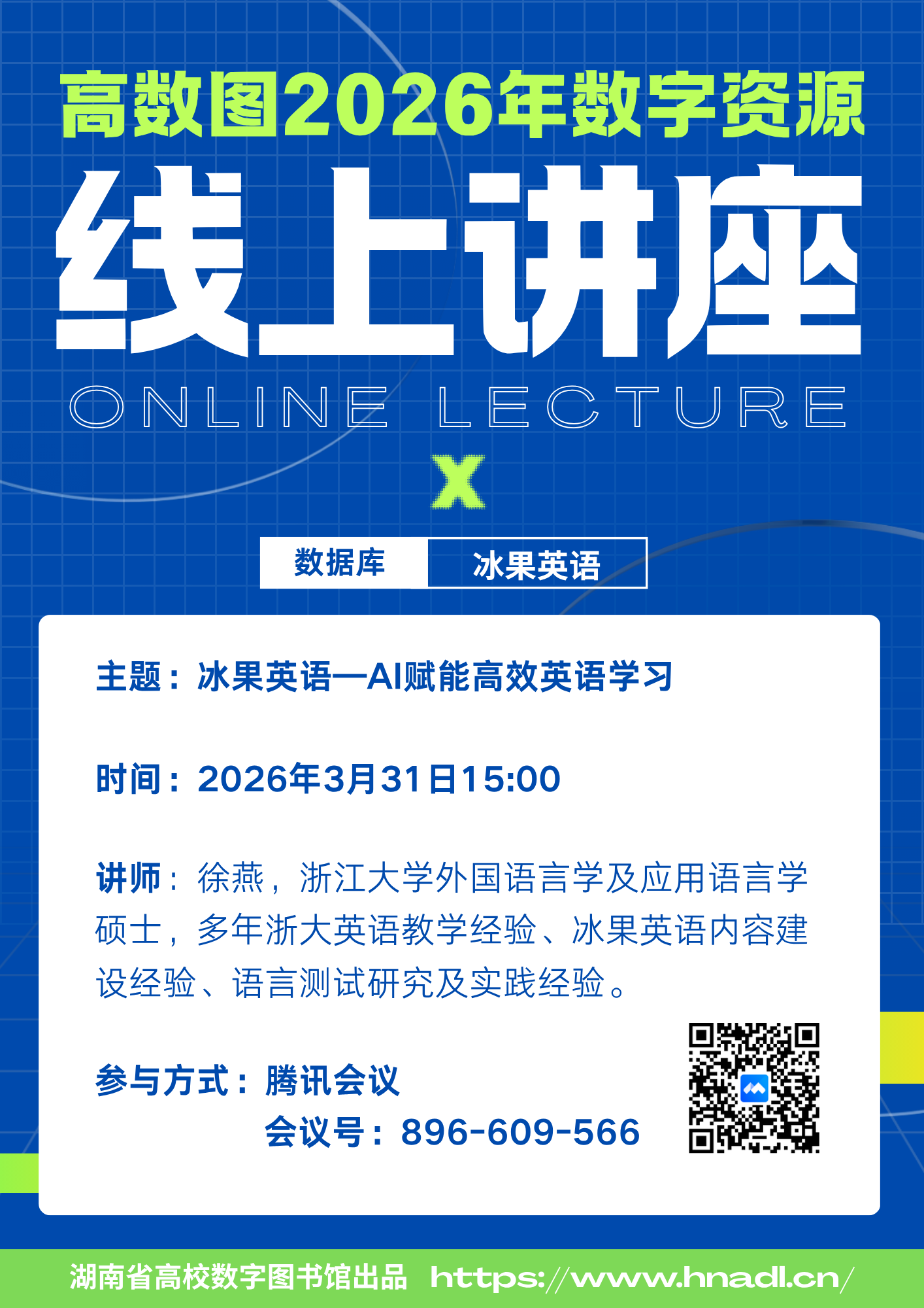 线上宣讲回放 | 湖南省高等学校图书馆数字资源共享平台《AI时代外文学术资源的“零障碍”获取指南》